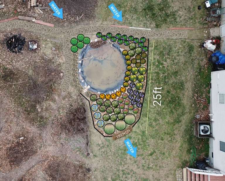 A site-specific planting layout based on your yard photo or base map